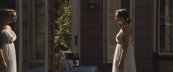 The names that the protagonist adopts throughout the film are a significant indication of her broken identity. Martha is the girl that existed before the film – her name invokes a sense of biological connection – of the family that had brought her into the world and since abandoned her. Marcy May, the name insisted on by Patrick, marks the beginning of a re-identification with a new family as she seeks independence and acquires a new set of, albeit distorted, values. A corrupt idealism harboured temporarily by an idyllic character. Patrick sings of this unattainable personality through the lyrics of Jackson C. Frank in ‘Marcy’s Song’: “She’s just a picture that’s all”, going on to comment on her impermanent mental state as a picture that has “faded in the sun”. Later a polaroid photograph is taken of her whilst she is out on the water, echoing the imagery of Marcy’s song and employing another motif of water. As with the constant use of glass, water becomes another symbol of reflection, or perhaps refraction as her image is often broken or distorted.